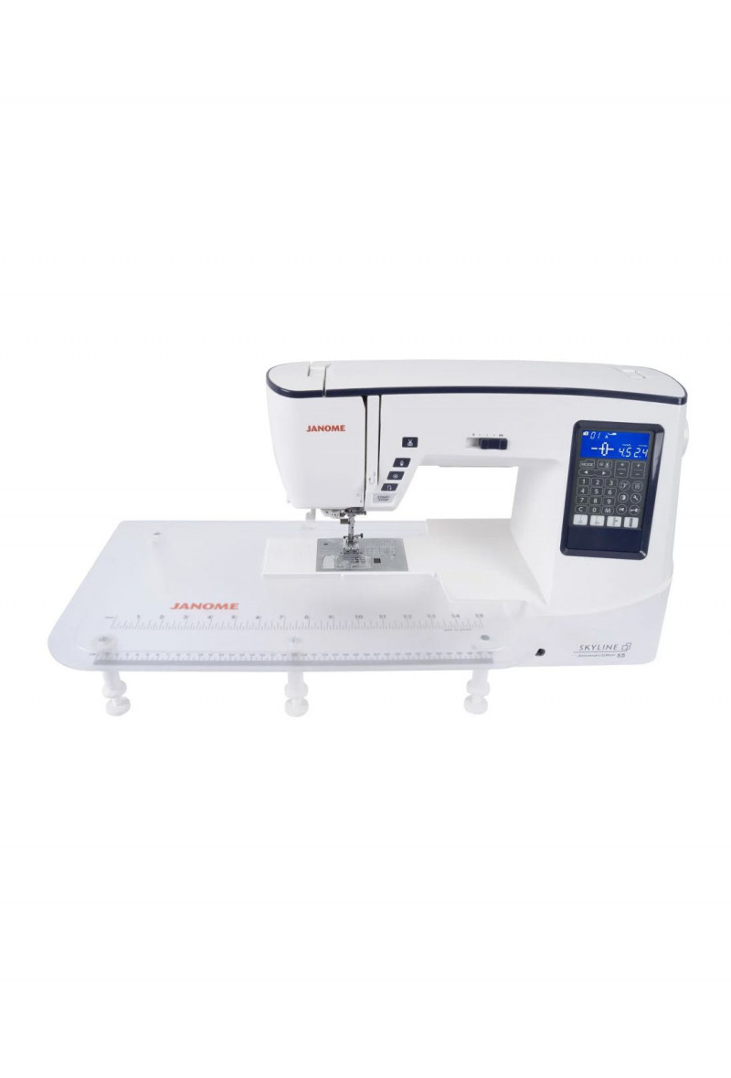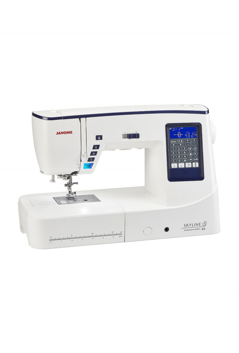 C'est la machine la plus confortable de la gamme JANOME grâce à son grand espace de travail et ses splendides points de 9mm de large. La SKYLINE S5 intègre les fonctions indispensables tel le "coupe-fil automatique et programmable" ainsi que le "système mains libres "genouillère".
