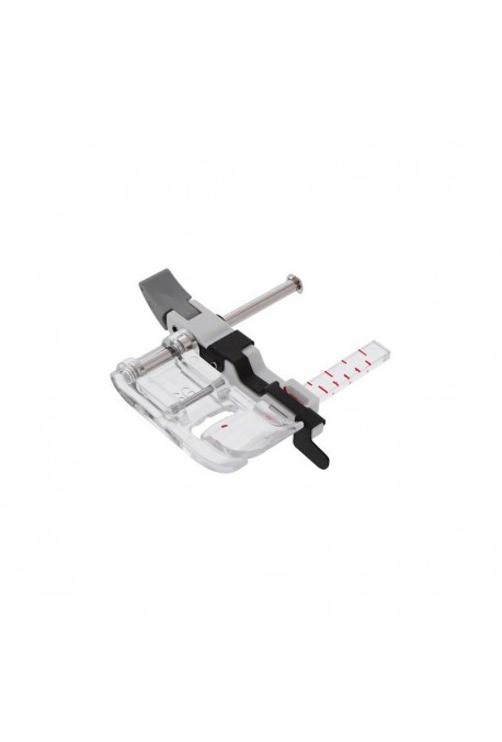 En quelques secondes, vous pouvez ajuster le guide jusqu'à 2,5 cm pour longer le bord d'un tissu, et créer des ourlets parfaitement droits à chaque fois. Le guide peut être déplacé librement et facilement en soulevant simplement le levier situé à l'arrière du pied, au lieu d'avoir à jouer avec une vis ennuyante.